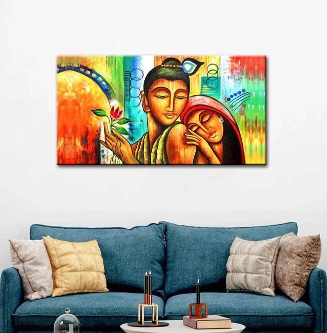 A Radha Krishna Abstract Painting beautifully captures the essence of eternal love, devotion, and harmony through modern artistic forms. Unlike traditional depictions, abstract interpretations use colors, textures, and emotions to tell a deeper story—making them perfect for contemporary bedrooms.